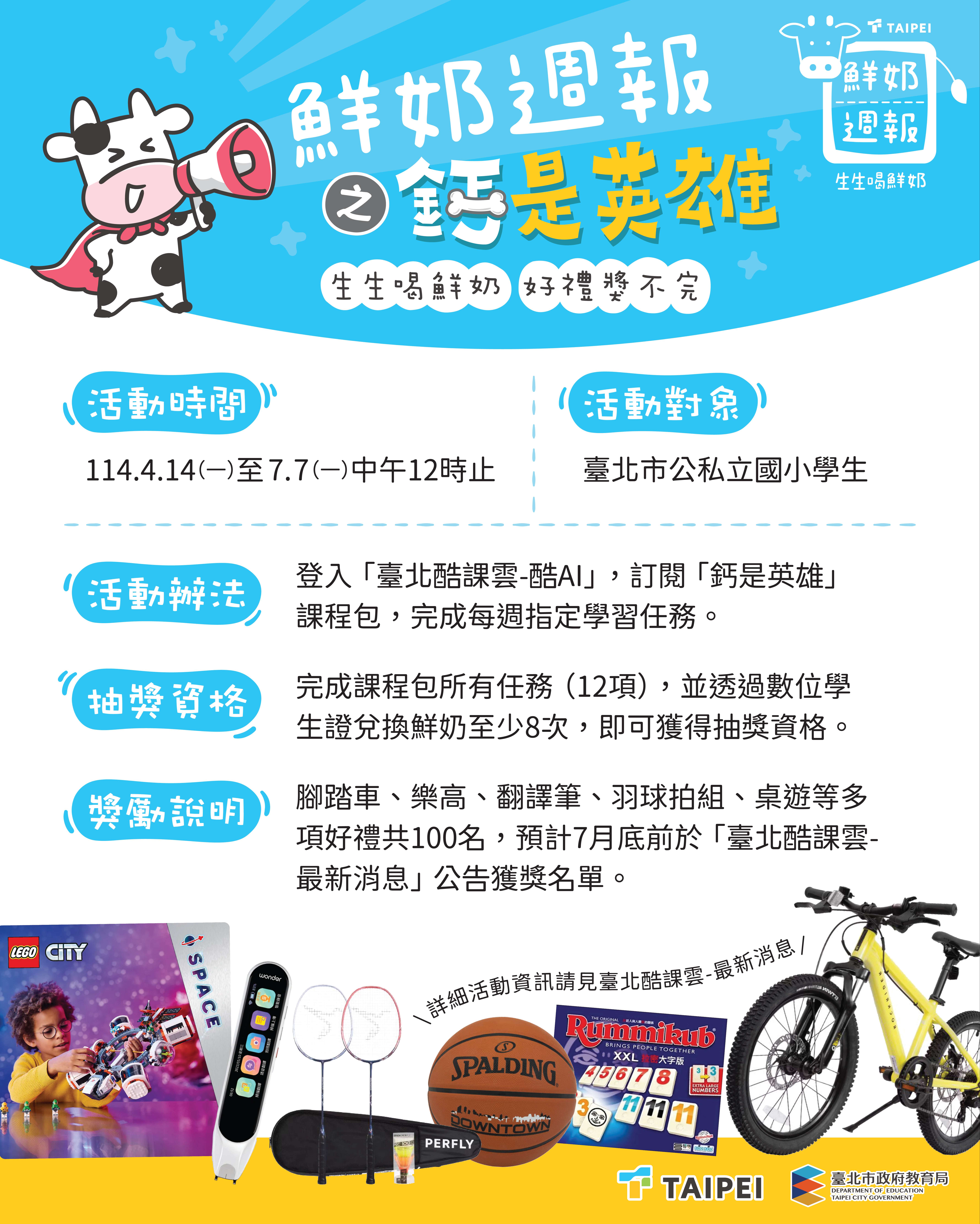 酷AI課程包自主學習 活動「鮮奶週報-鈣是英雄」,活動概述如下: