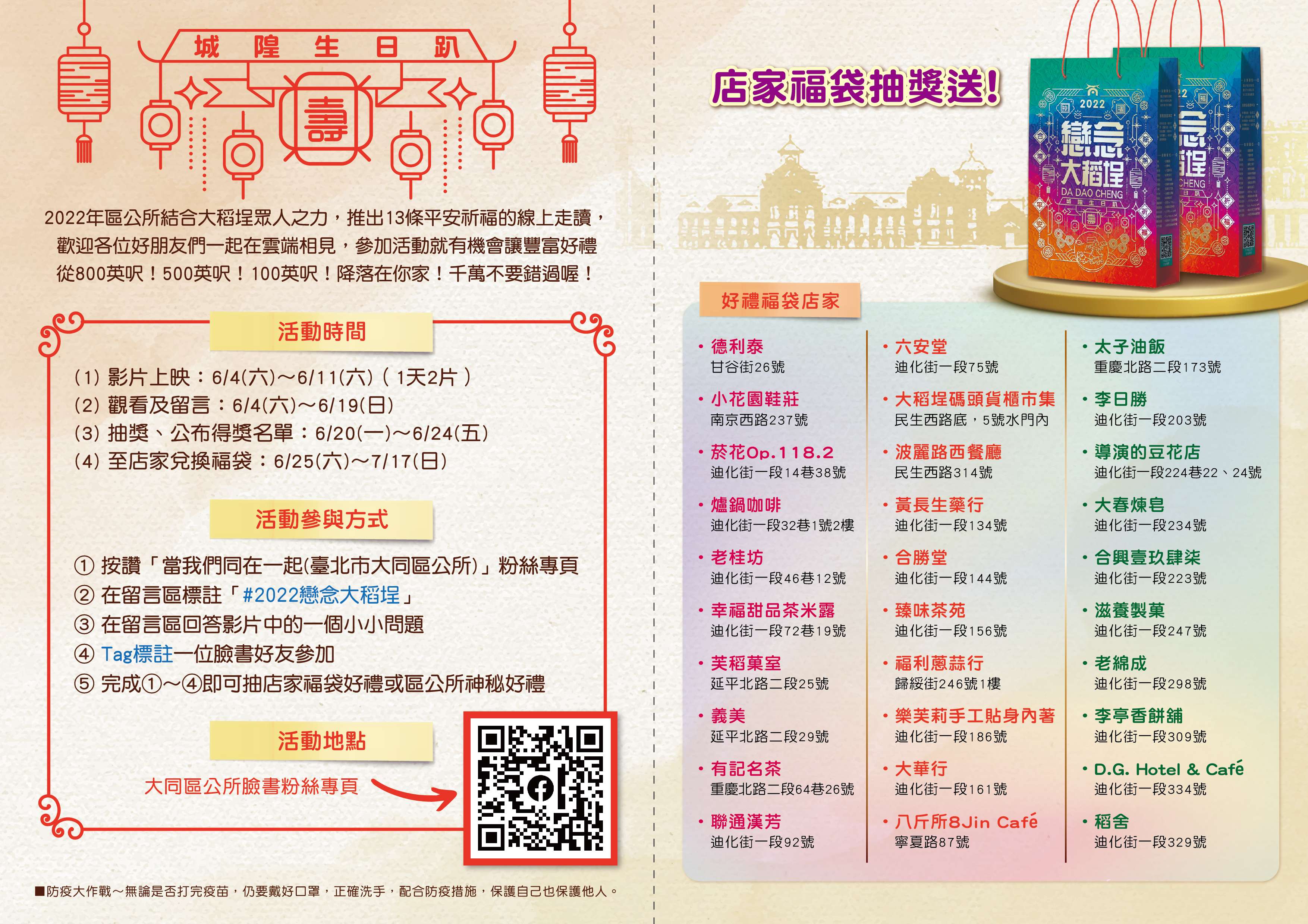 「2022戀念大稻埕—城隍生日趴」線上活動將於6/4~7/17溫暖登場,