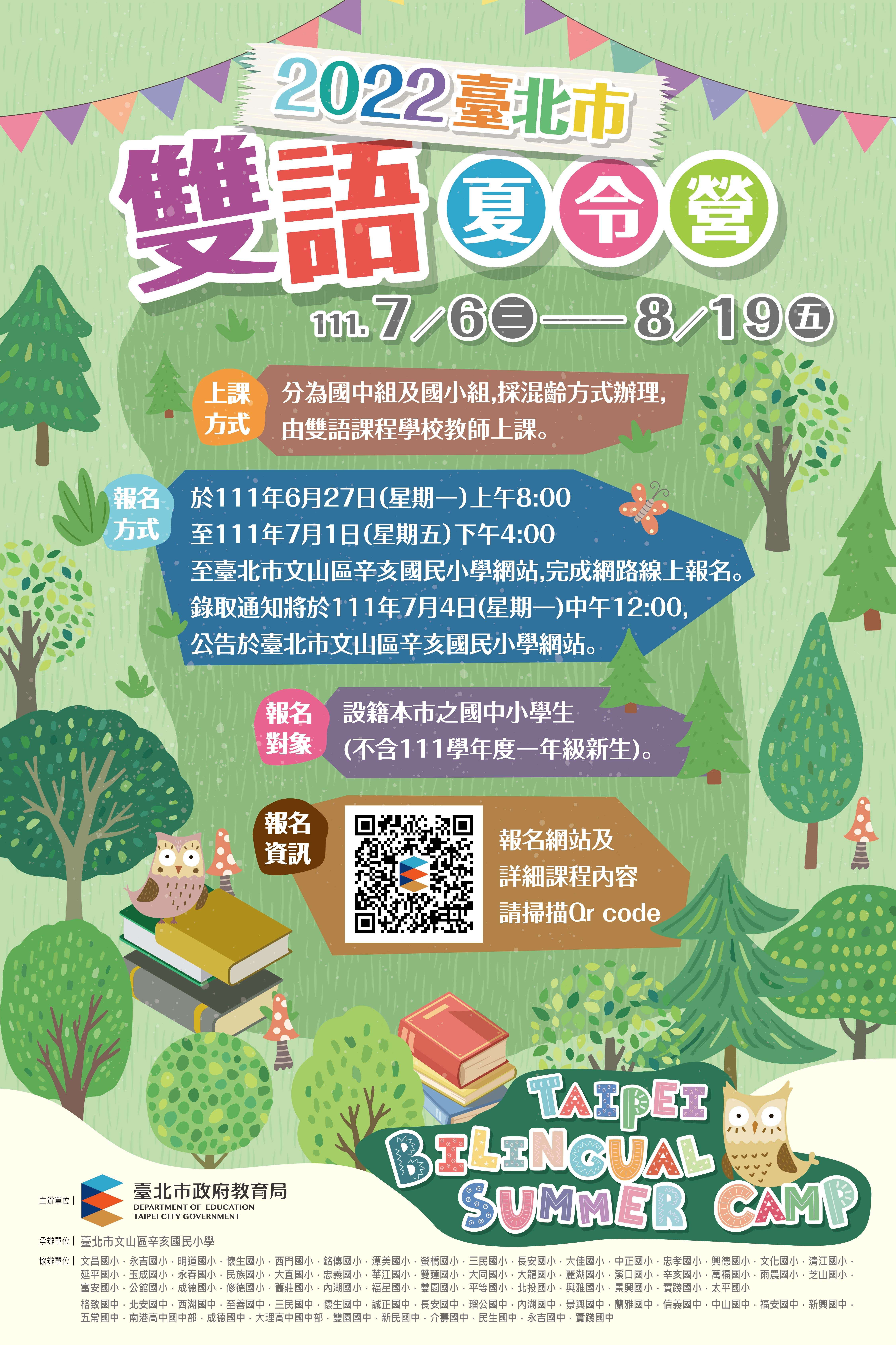 (二)報名時間:於111年6月27日(星期一)上午8時至111 年 7月1日(星期五)下午4時,報名期間可至臺北市文山區辛亥國小網站(http://gg.gg/2022ESC),完成線上報名,逾期不受理。