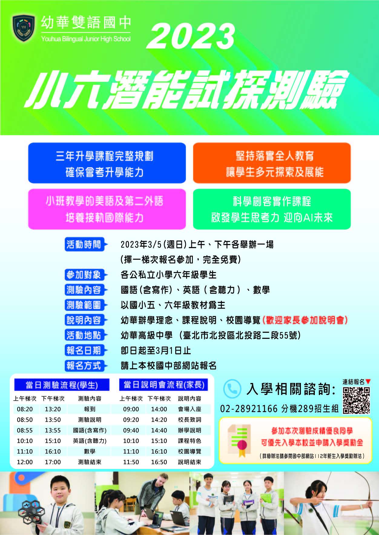 二、活動地點:臺北市幼華雙語國中(臺北市北投區北投路二段 55號,北投捷運站旁)
