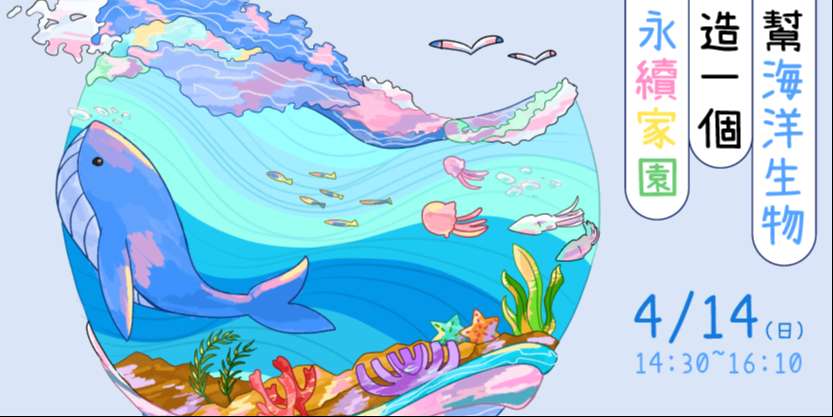 (三)30字:青發家教中心4/14陳映伶開講:幫海洋生物造一 個永續家園。活動免費詳官網。
