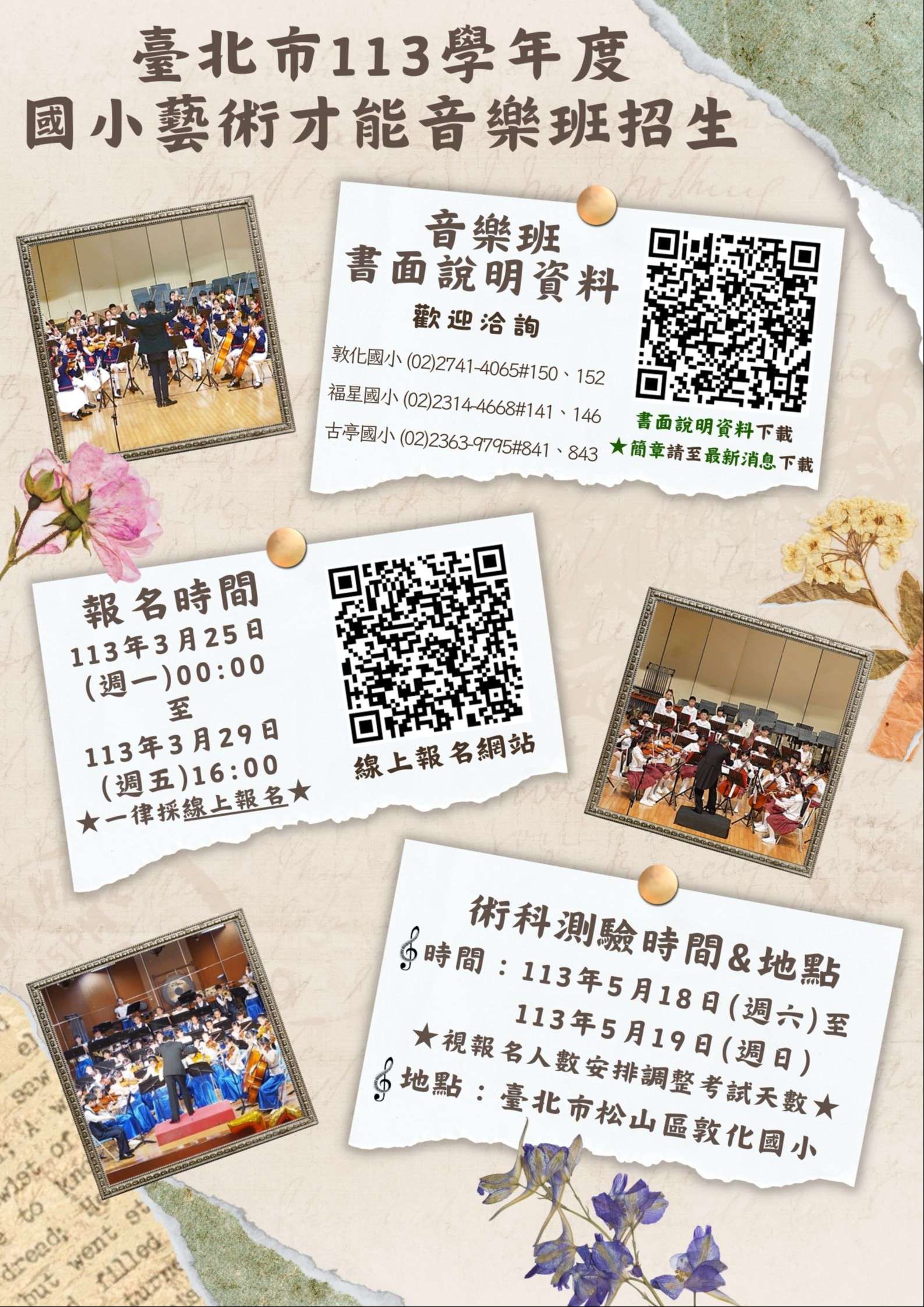 二、報名時間及方式:113年3月25日(星期一)00:00起至3月 29日(星期五)16:00止,於本市國中小藝才班鑑定報名系統報名。