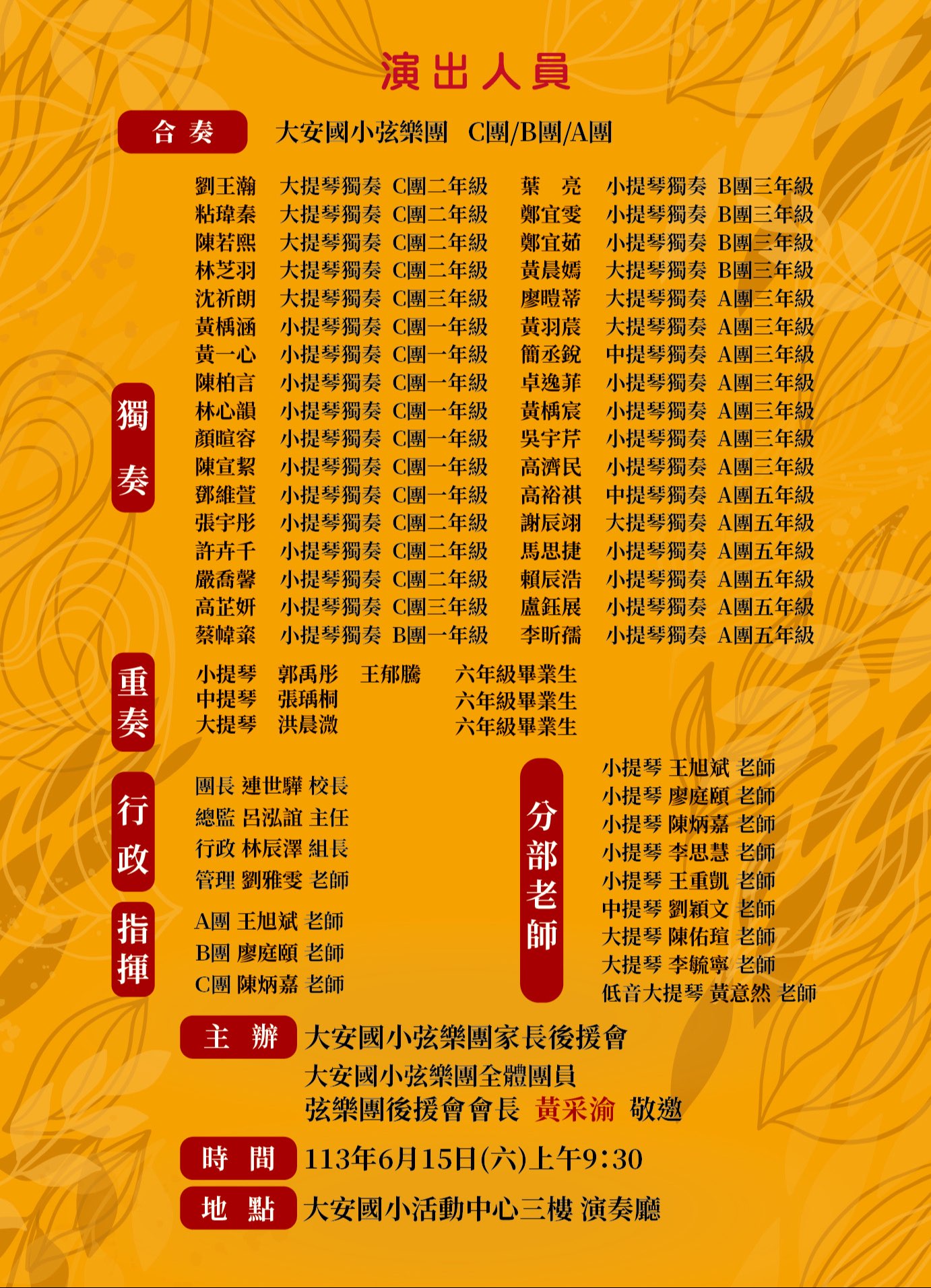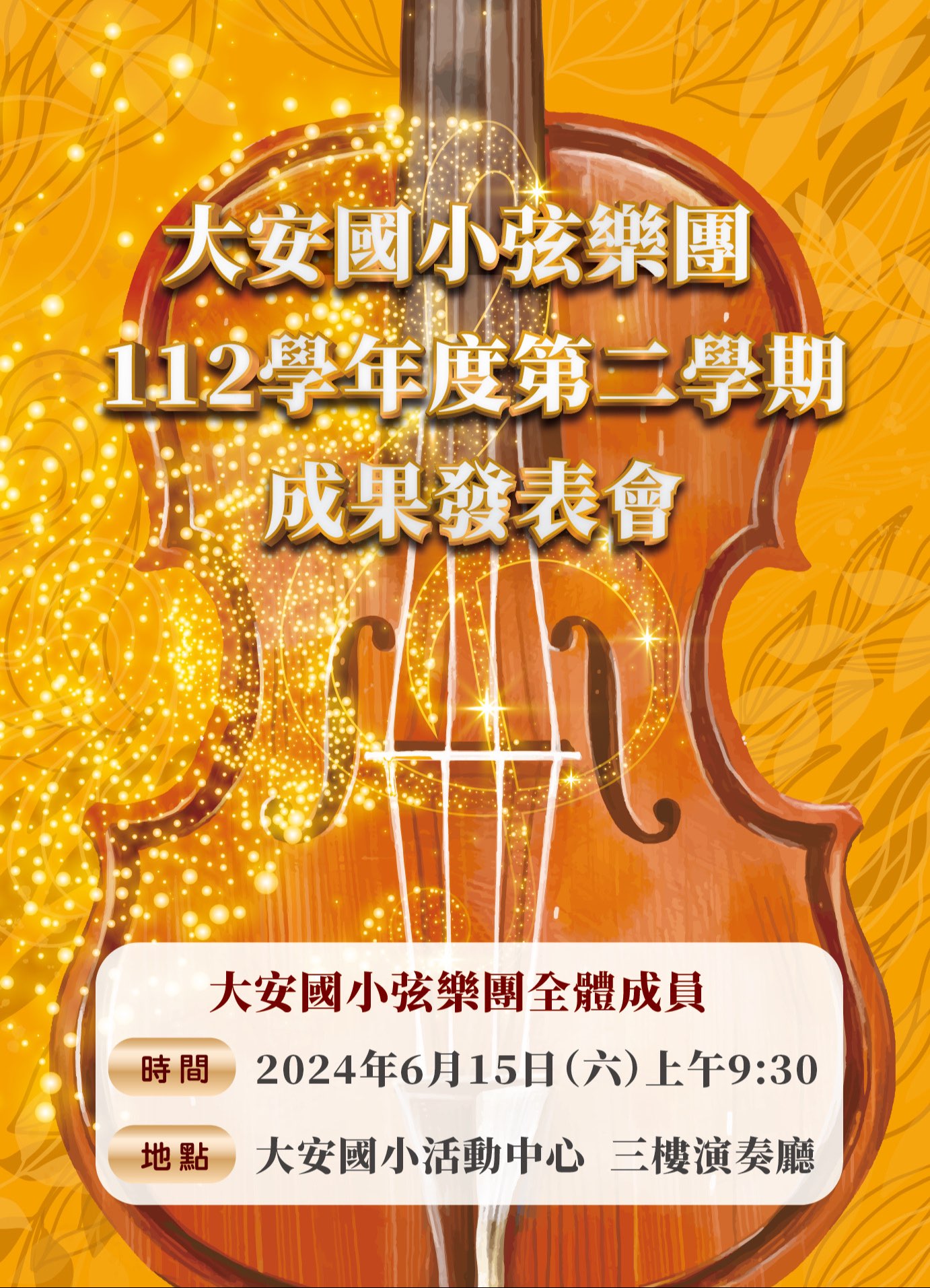 敬邀各位家長、老師,一同欣賞弦樂團成果發表會!