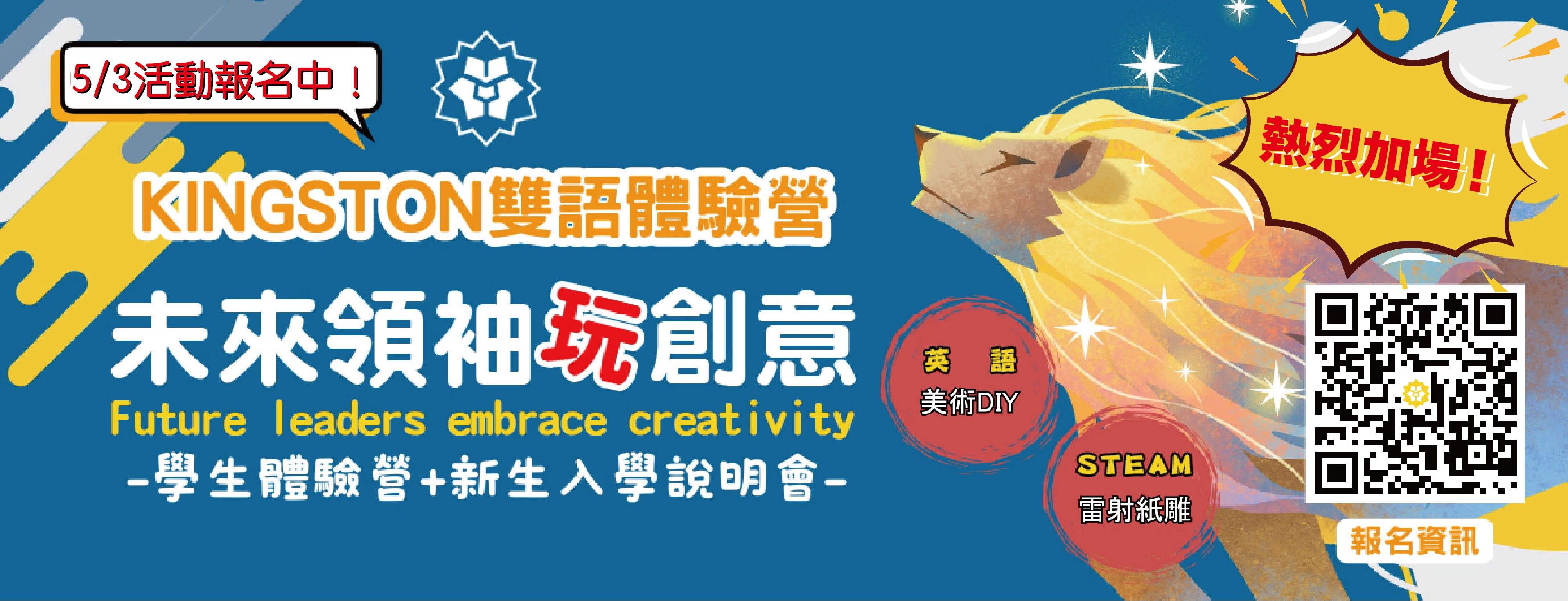 一、目的:【未來領袖玩創意-Kingston 雙語體驗營】在全球化的時代,創造力與雙語能力是孩子未來發展的重要資產, 本次 Kingston 雙語體驗營集結本校外師與中師,以「雷 射紙雕STEAM」與「英語美術DIY」為主題,設計一系列豐富有趣的體驗課程,我們也在同一時間安排114學年新生入 學說明會,深入介紹本校的課程規劃與環境導覽,並解答您的所有疑問,歡迎家長帶著您的孩子一起報名參加!