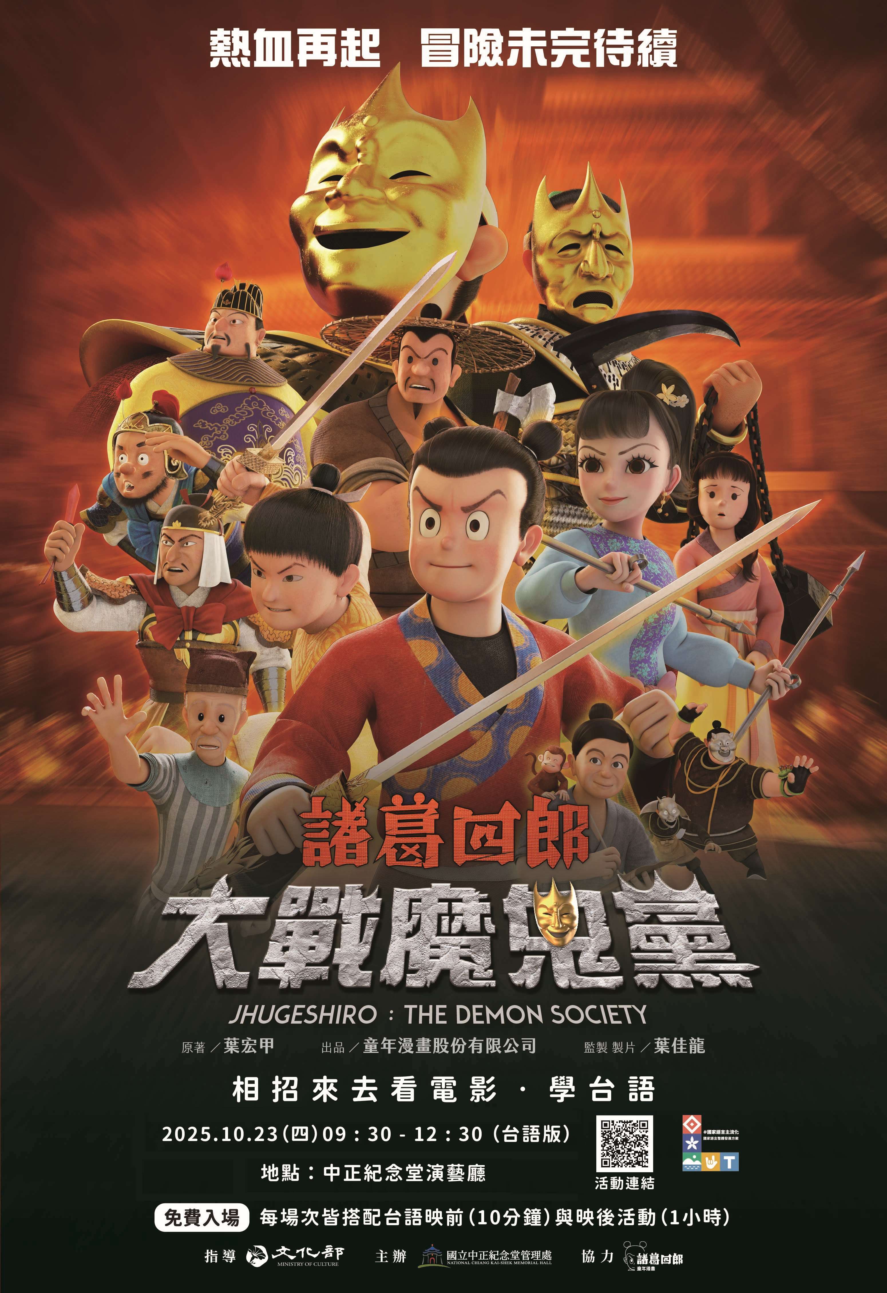 三、旨揭動畫電影訂於本(114)年10月23日上午9時30分至12 時30分於中正紀念堂管理處演藝廳辦理,免費觀賞並搭配 映前導讀及映後座談,請鼓勵師生參與學習。