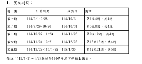 四、 活動實施期間 114年9月1日起至115年1月25止。