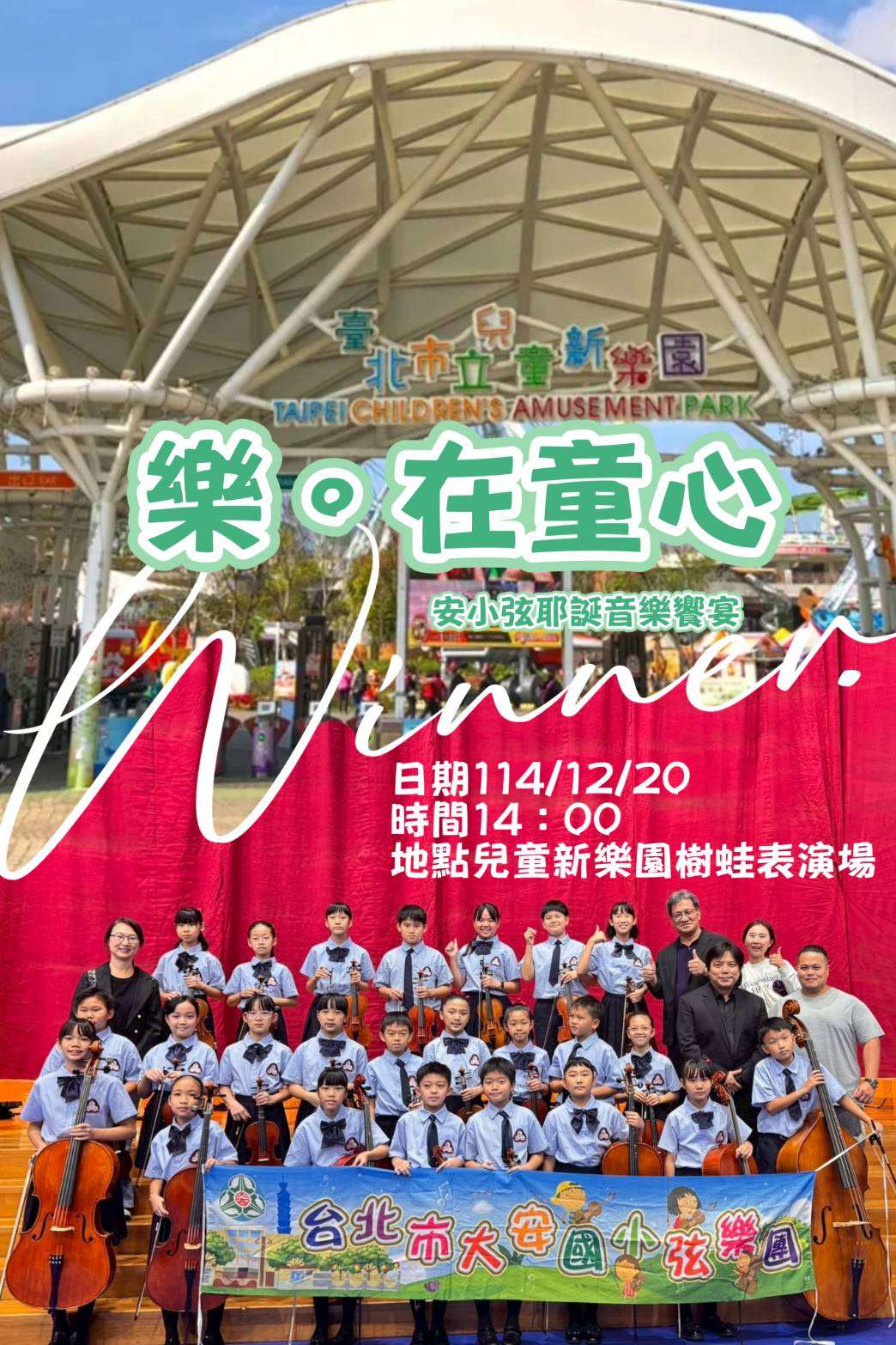 本校弦樂團於12/20 (六)14:00兒童新樂園舉辦耶誕音樂饗宴