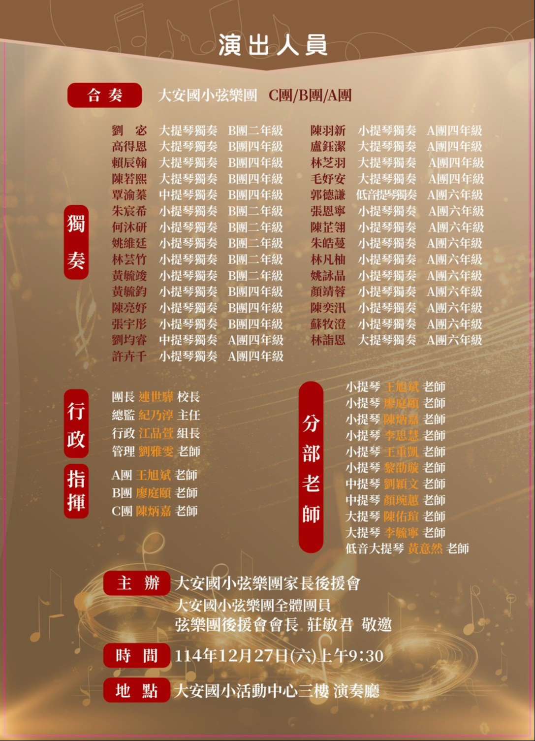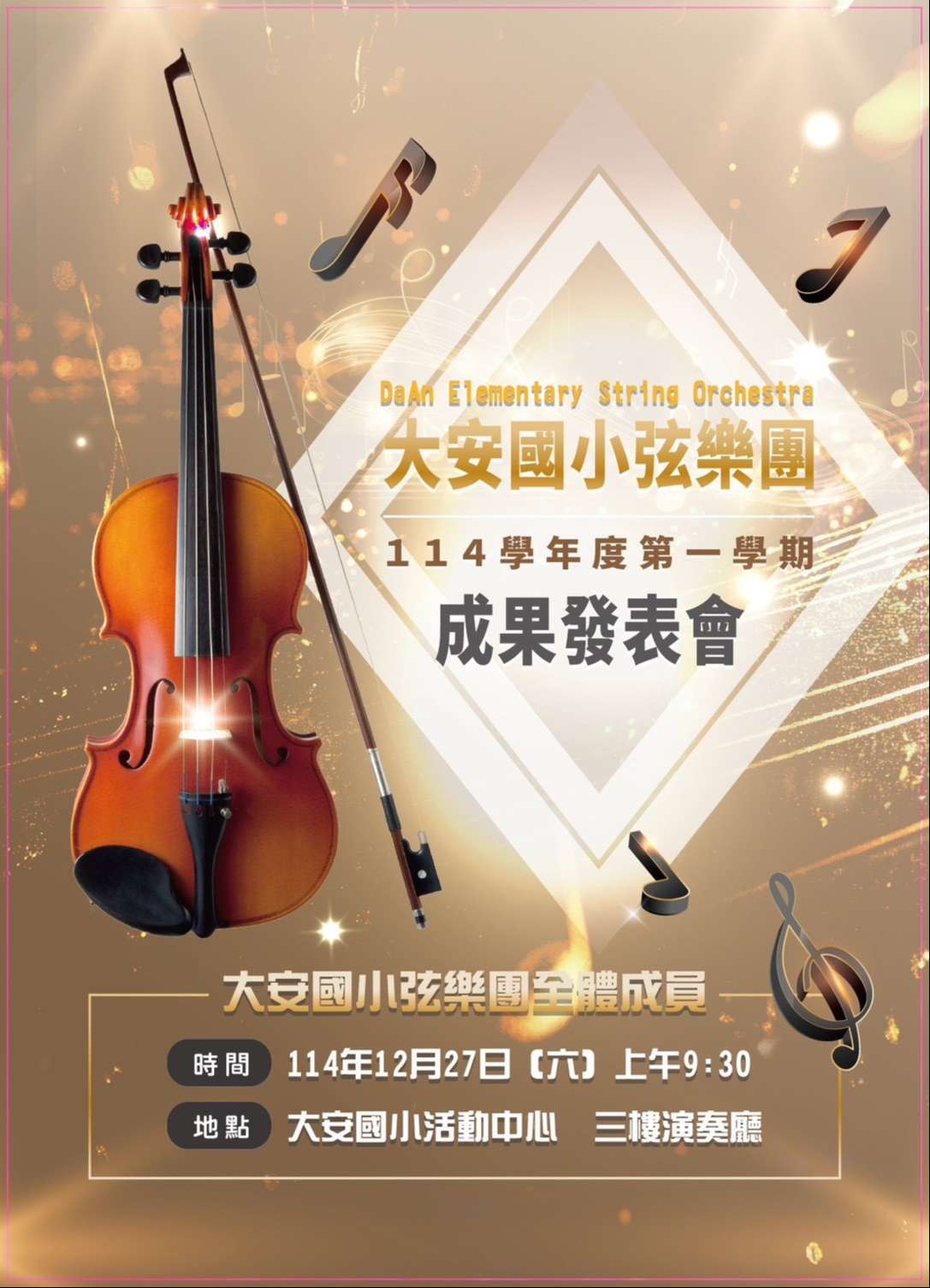 本校弦樂團舉辦114學年第一學期成果發表會,時間:114年12月27日(六)上午09:30,