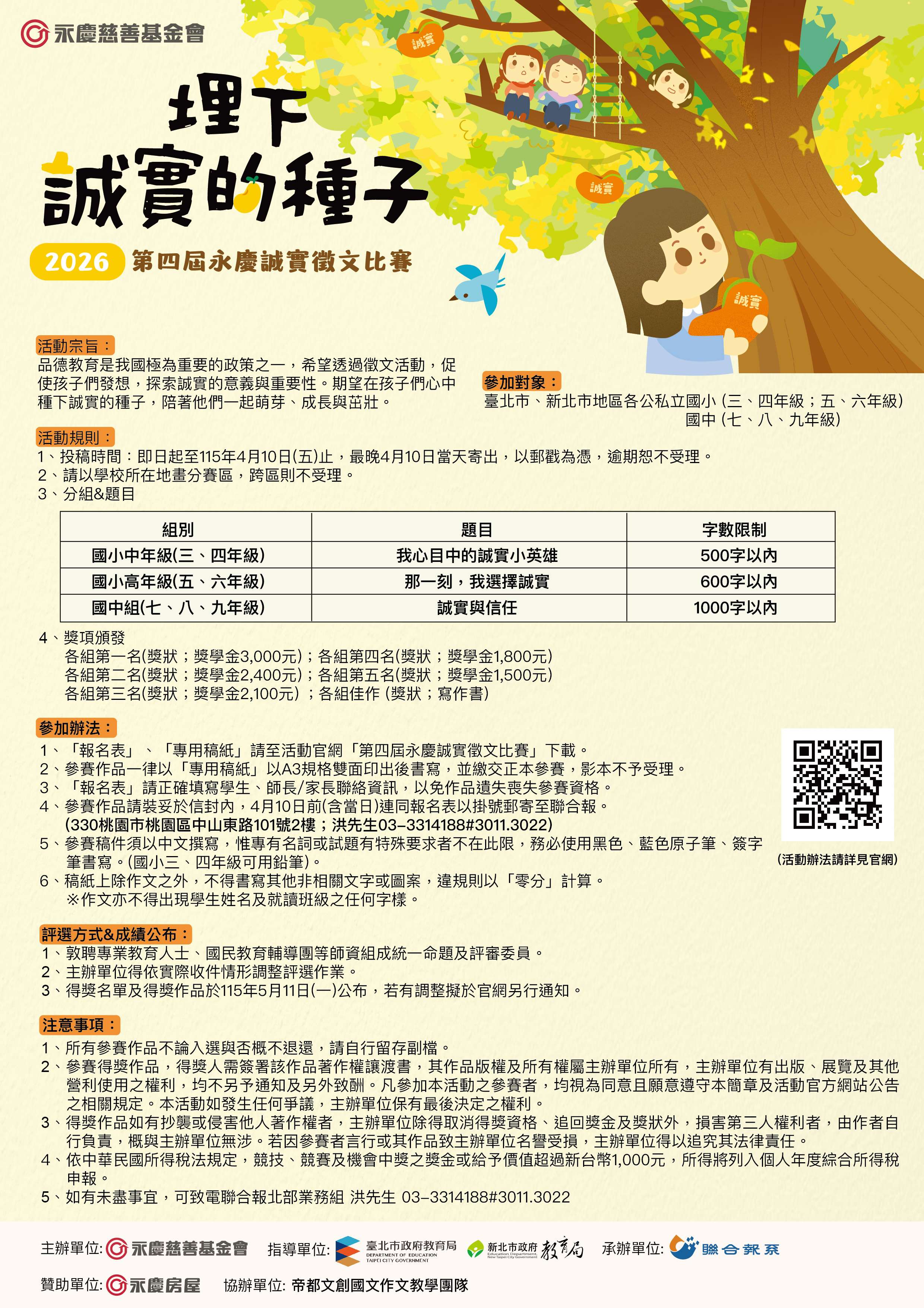 一、依據永慶房屋第四屆品格教育徵文活動計畫辦理。